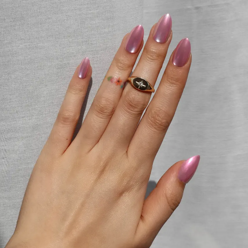 Siren benzeri bir çekicilikle büyüleyin. Büyüleyici Mermaid takma tırnak seti, güneşin altında bir deniz kızının ışıldayan kuyruğunu anımsatan, okyanus pembesi tonlarında parlayan sedefli bir bitişle parlar. Herhangi bir plaj günü kombinine efsanevi bir güzellik dokunuşu eklemek için ideal olan bu büyüleyici kısa badem takma tırnaklarla yaz stilinize dalın.