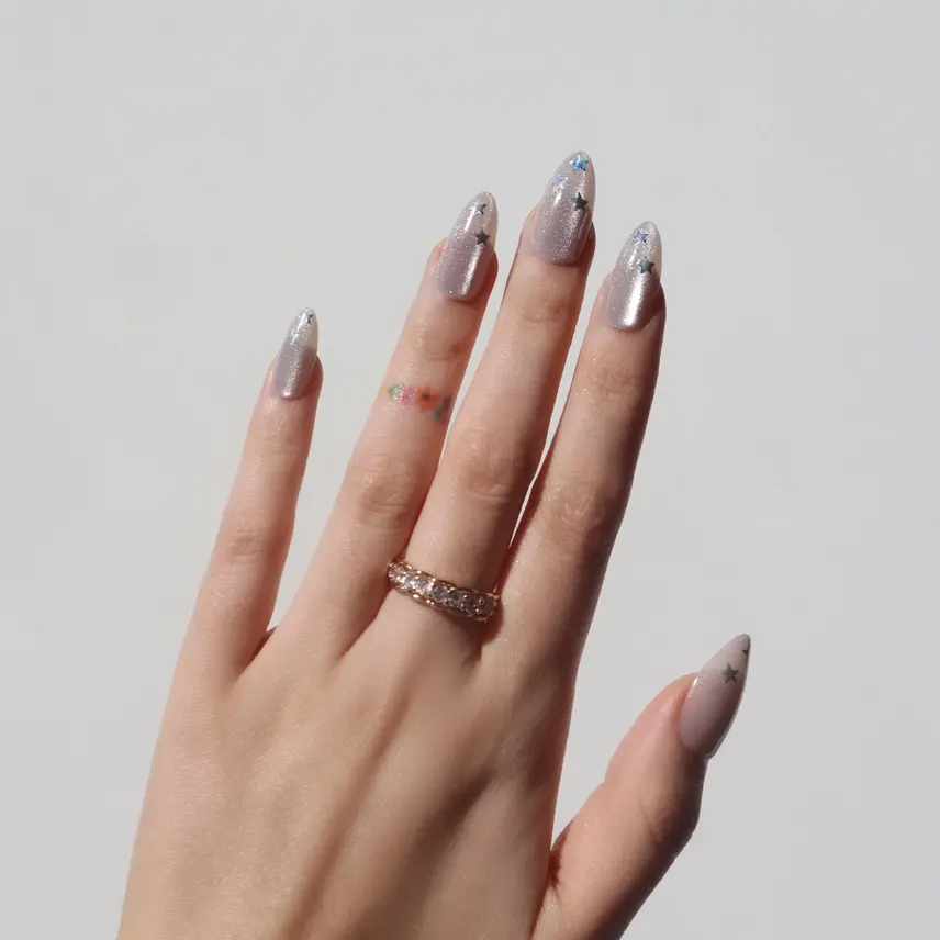 Gösterinin yıldızı olarak parlayarak yılı All Stars takma tırnak setimizle başlatmaya hazır olun. Yıldız tozunun üzerinde yürüyormuş gibi hissetmenizi sağlayacak yıldızlı bir kutlama. Muhteşem bir Yeni Yıl deneyimi için tasarlanan bu orta uzunluktaki kadife badem şeklindeki tırnaklar, sizi gecenin gerçek All Star'ı yapmak için burada.